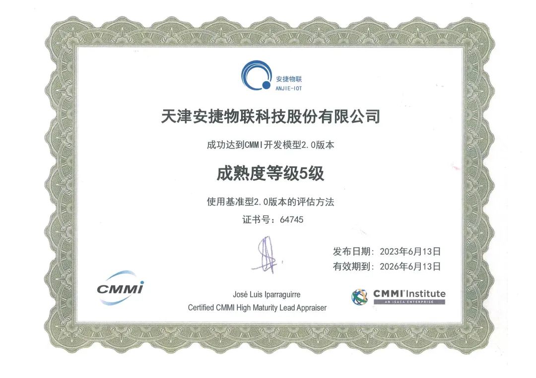 近日,jiuyou九游物联顺利通过全球软件领域难度最大、规格最高的软件开发能力成熟度认证CMMI 5,并获CMMI研究院ISACA颁发的CMMI 5 V2.0认证证书。